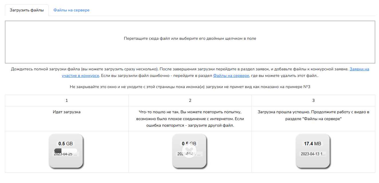 Теперь у вас отображается информация о файлах, которые вы можете добавить к конкурсу.